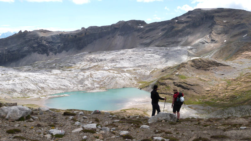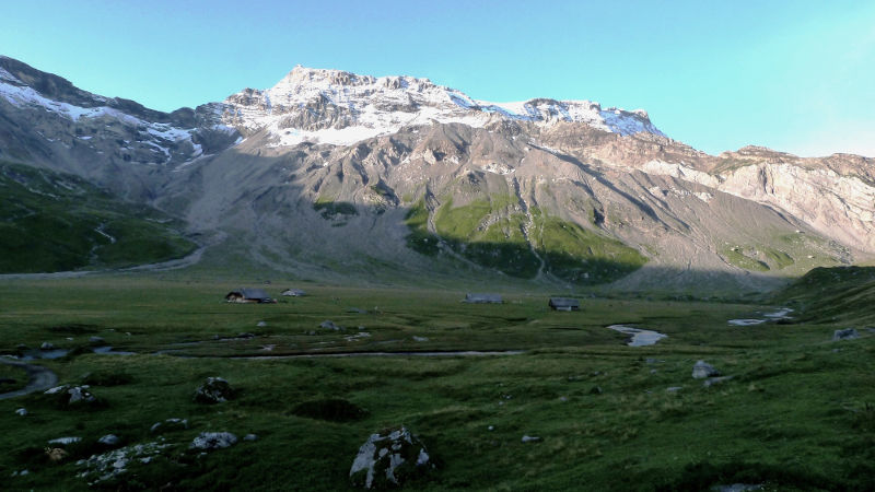 In den Morgenstunden des folgenden Tages benötigten wir bis zur Rast auf der Wildhornhütte (2.300 m) 2,0 Std. Anschließend überschritten wir das Schnidejoch (2.760 m) und rasteten nochmals am Lac de Tene (2.440 m). Im unmittelbaren Anschluss hatten wir für ca. 30 min ein stark zerklüftetes Karstgelände zu überwinden. Über den Col des Eaux Froides (2.560 m) erreichten wir schließlich nach insgesamt 8,0 Std. unser Tagesziel Cabane des Audannes (2.500 m) im teilweise französischsprachigen Kanton Wallis. Am Abend entschied sich dann aufgrund der Verletzung eines Gruppenmitglieds eine Touränderung.